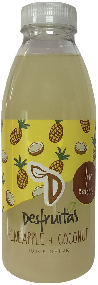 Ingredients: Water, Pineapple Juice from concentrate (15%), Coconut Water (5%), Citric Acid, Natural Flavourings, Acidity Regulator (Tri-Sodium Citrate), Preservatives (Potassium Sorbate, Dimethyl Dicarbonate), Stabiliser (Gellan Gum), Sweetener (Sucralose).